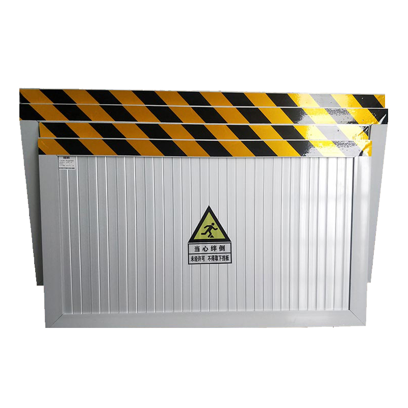絕緣伸縮圍欄邊框為30*75mm槽鋼,壁厚2.5mm,并在頂部裝設防雨護帽。中間格柵為圓管,圓管直徑26mm,長100cm,厚2cm,邊框與中間格柵連接部位上端固定,下端為活動連接。伸展至最大位置時中間格柵橫向距不大于300mm。底座為30*60mm方管